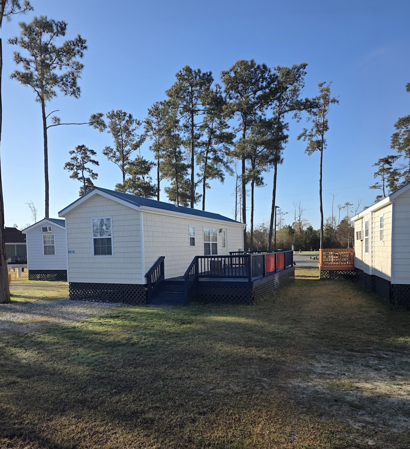 A flexible studio layout with a queen bed and bunk sleeping, perfect for small families. Enjoy a furnished outdoor space, fire pit, picnic table, and access to all community amenities.