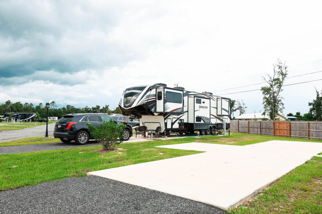 Brand new RV park with all the amenities. Staff was friendly, kind and helpful with curb side service. Concrete new pads and long enough for toad. Must stop if ya'll need one prior to entering into Florida or on way back from south Florida. Easy on/off. Quiet. We will add this Park to our travel list.