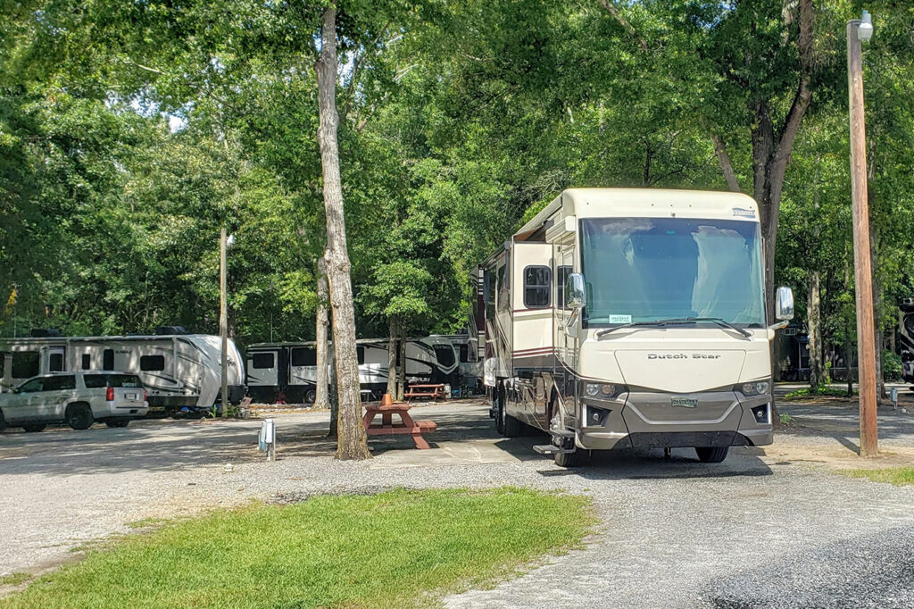 We own a 45’ class A motorhome and this campground is big rig friendly which we appreciated very much! The staff were super friendly! The campground was very neat, clean, and well maintained! Another thing we appreciate about a campground! The pool and gazebo lounging area were fantastic! If you are passing through Elko, GA, this is a great place to stay!